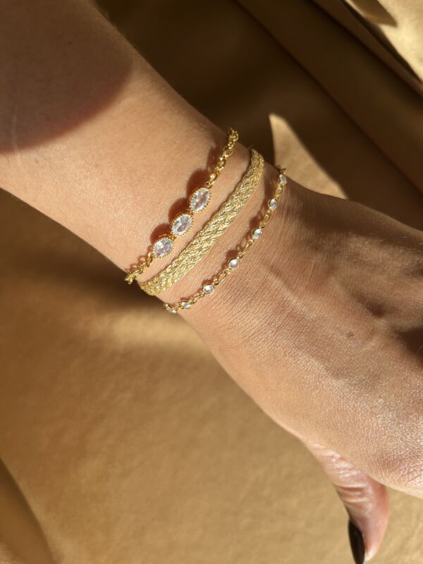 Das Bairo Armband Brisa goldig mit Zirkonia ist ein zartes und gleichzeitig enorm wirkungsvolles Armschmuckstück. Dieses bezaubernde Armband lässt sich super gut mit anderem Armschmuck kombinieren und ist darum auch ein Must-Have in jeder Schmuckgarderobe. Mit diesem hinreissend schönem, super stylischen und doch zeitlos elegantem Armband kannst du jedes Outfit und jeden Look upgraden. Egal ob für Business- / Casual- oder festliche Anlässe, dieses Armband von Bairo by Baianaroom ist ein Multitalent ! Es ist sehr hochwertig verarbeitet und federleicht deshalb wirst du es lieben weil du es kaum auf der Haut spürst. Diese Armand wird mit Sicherheit dein neues Lieblingsstück! Die hinreissend schön funkelnden Zirkonia sind in einem feinen Goldrand gefasst dies verleiht dem Armschmuckstück eine besonders hochwertig Note. Für alle die das besondere lieben ist dieses Armband ein absolutes Must-Have! Auch als Geschenk für eine tolle Frau in deinem Leben landest du damit sicher einen Volltreffer!