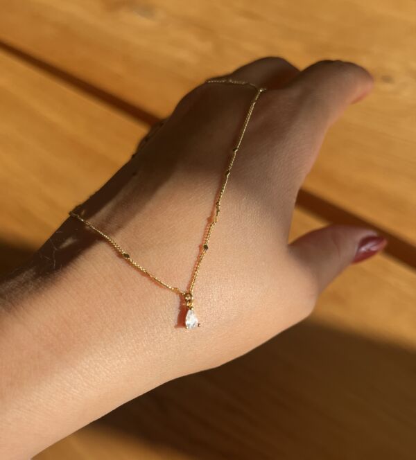 Diese zarte Halskette ist sowohl für deine feierlichen Momente wie auch für deinen Alltag die richtige Wahl weil sie eine wunderschöne, elegante Wirkung hat ohne aufdringlich zu sein. Dadurch dass der Zirkonia Tropfen eine kleine Grösse hat, bleibt das Design edel und zeitlos. Du kannst dieses wunderschöne Halsschmuckstück auch super mit anderen Halsketten kombiniere und layern. Super leicht und angenehm auf der Haut zu tragen, ist diese Halskette die richtige Wahl wenn du gerne feine und leichte Schmuckstücke trägst.