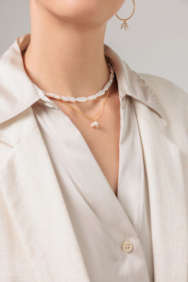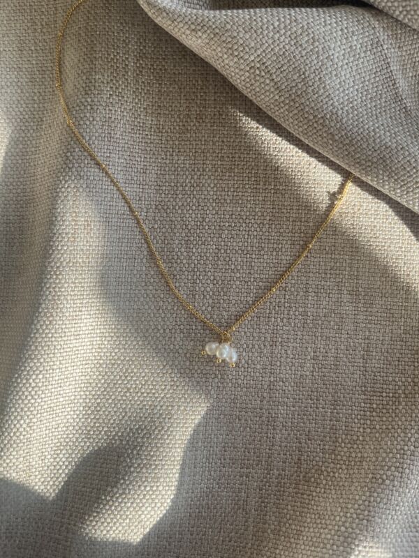 Die Bairo Halskette Trio Pearl ist eine wunderschöne, filigrane Halskette mit drei Süsswasserperlen. TRIO PEARL steht für Nähe, Balance und leise Verbundenheit. Darum ist diese Halskette ein Schmuckstück dass dich im Alltag genau so begleitet wie bei besonderen Momenten. Ein Schmuckstück welches du mit allen Farben und Outfits kombinieren kannst und mit dem du nie over-/ underdressed bist. Diese bezaubernde Halskette eignet sich auch wunderbar als Geschenk für eine besondere Frau in deinem Leben. Da die Perle ein Naturprodukt ist, ist keine Halskette genau gleich wie die andere denn so wie jede Perle für sich einzigartig ist, bist es auch du. Ein Halsschmuckstück für alle die das Besondere suchen.