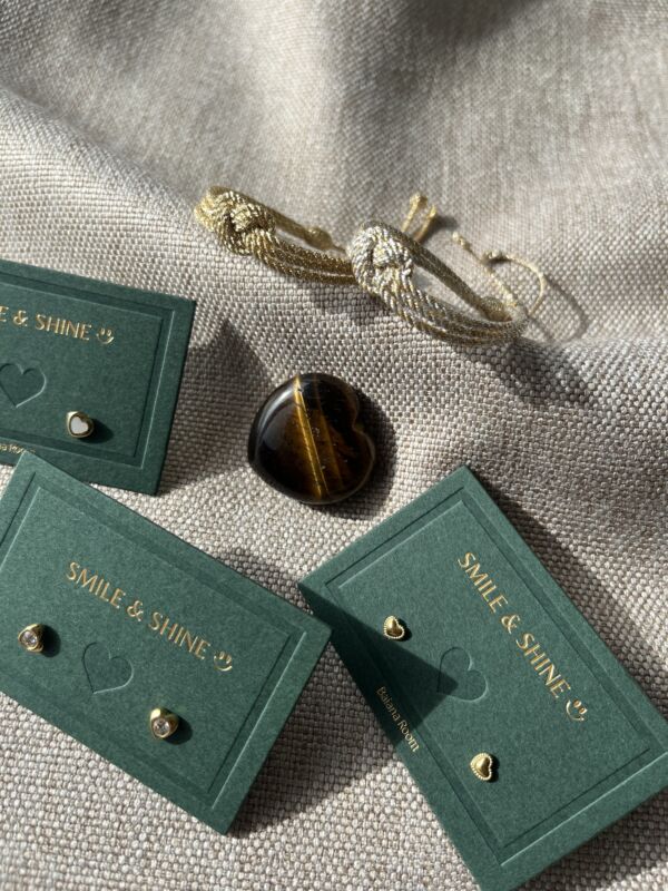 Diese Ohrstecker sind aus Messing und 3 Mikron stark mit 925 Silber versilbert. Dadurch behalten sie ihre Farbe und sind auch für empfindliche Ohren geeignet. Die Ohrstecker werden mit einem süssen, grünen Karton mit der Aufschrift „Smile & Shine“ und in einem hübschen „Schmucksäckli“ versendet.