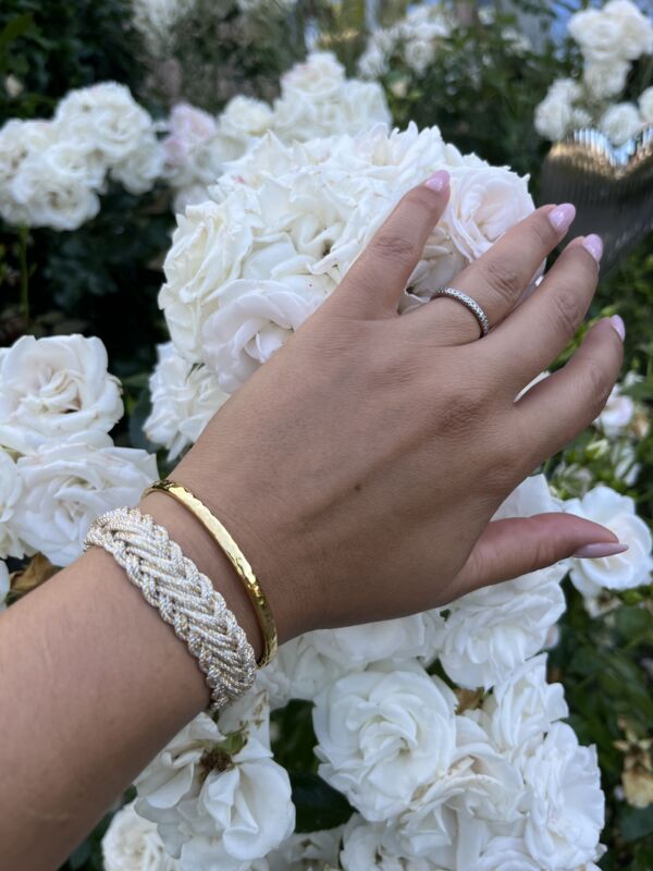 Das Maayaz Armband Azal in Silbergold ist ein supercooles Statement Piece und Must-Have für alle Schmuck Liebhaberinnen! Das dezente Glitzern, die besondere Struktur und die Haptik werden dich begeistern. Das Design von diesem coolen Armschmuckstück macht das Maayaz Azal Armband zum unverzichtbaren Basic in jeder Schmuck Garderobe. Durch die silbergoldene Farbe, passt sich dieses Armband jedem Hautton und jeder Farbe an. Darum passt das Maayaz Azal Armband zu jedem Anlass, jedem Style und jedem Alter. Es verleiht deinem Look eine einzigarte, hochwertige und gleichzeitig lässig, coole Note.