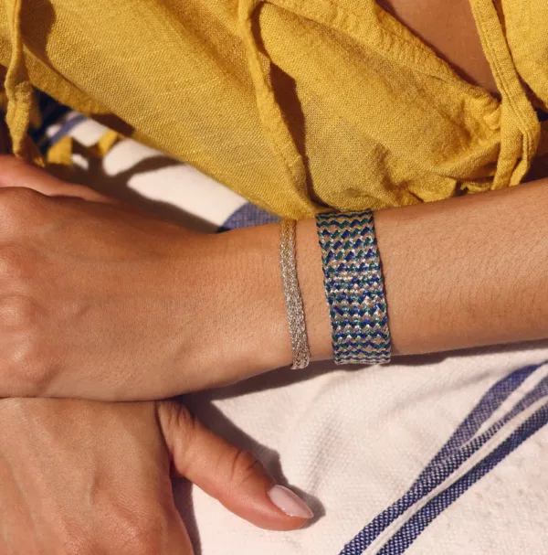 Hergestellt werden die Maayaz Armbänder aus Goldfäden die man in Marokko «sfifa» nennt. Traditionell werden die Fäden verwendet, um das marokkanische Kleid, den Kaftan, zu besticken. Dank des beweglichen Knotens kann das Bracelet auf jede Größe zwischen 14 und 21 cm eingestellt werden.