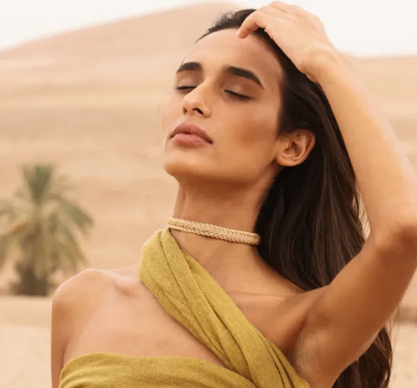 Die Maayaz Schmuckstücke werden hergestellt aus Goldfäden die man in Marokko «sfifa» nennt. Traditionell werden die Fäden verwendet, um das marokkanische Kleid, den Kaftan, zu besticken. Durch das praktische Knoten-Stystem einfach verstell- und anpassbar.