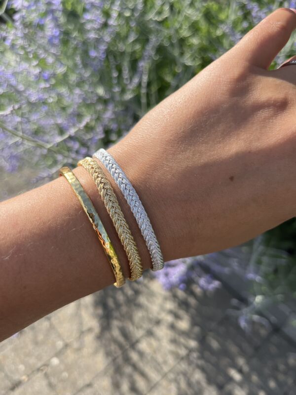 Dieses tolle, goldfarbene Maayaz Eya Armband ist ein wahres Kombinations- und Allroundtalent! Es ist federleicht und super easy zum kombinieren mit anderen Armreifen oder Armbänder. Durch das besonders schöne Zopfmuster ist dieses Armband aber auch für sich alleine getragen ein feiner Eyecatcher. Wenn du ein Armschmuckstück suchst, welches du ganz einfach zu allem kombinieren kannst dann ist das Maayaz Eya Armband genau das Richtige für dich! Auch wenn du bis jetzt immer nur silbrige Schmuckstücke getragen hast und dir überlegst wieder einmal ein goldiges Armband zu tragen zb. zu einer Uhr oder für einen bestimmten Look oder einfach so, dann ist dieses bezaubernde, goldfarbene Maayaz Eya Armband perfekt dafür!