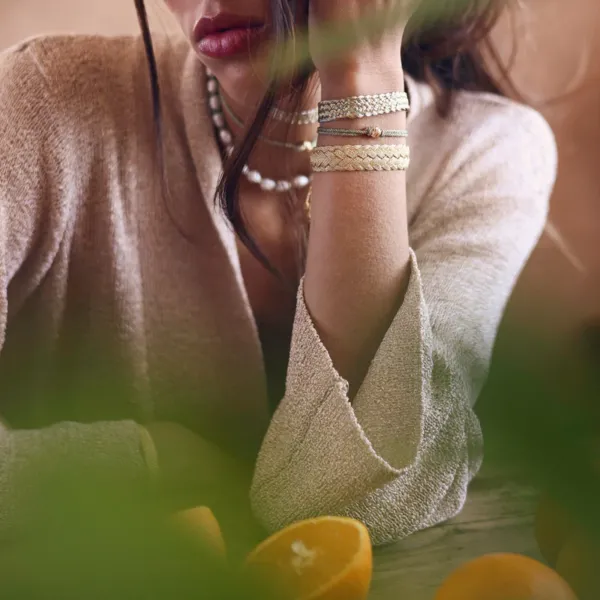 Das Maayaz Lira Armband goldig, ist ein besonderes Statement Piece und Must-Have für alle Armschmuck Liebhaberinnen! Egal ob zum Ausgehen oder für den Alltag, das brandneue Maayaz Lira Armband passt immer und verleiht deinem Look Power sowie das gewisse Etwas. Das dezente Glitzern und das besondere Design machen das Maayaz Lira Armschmuckstück zu deinem Highlight Piece in deiner Schmuck Garderobe. Ideal für Frauen die gerne breite, oder mehrere Armschmuckstücke tragen und sich trotzdem einen angenehmen Tragekomfort wünschen. Denn dieses Armband ist supersoft, schön flach und lässt deine Haut atmen. Darum stört es dich nicht beim Arbeiten am PC, beim Spielen eines Instruments usw. weil es trotz seiner Breite von ca. 13 mm, federleicht ist.