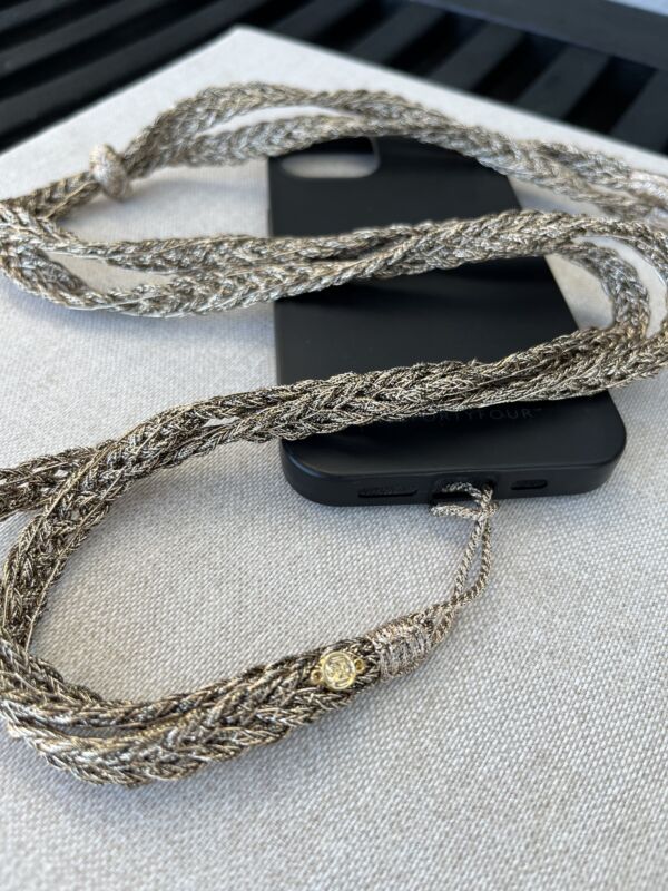 Die Maayaz Natelkette Maxi Braided in Greige wurde entwickelt, um dir das Leben zu erleichtern (und die Hände freizuhaben). Perfekt für geschäftige Tage, Nächte, Reisen, Shoopingtouren, Hochzeitsfeiern und alles was das Leben sonst noch für dich bereit hält! Der ganz besondere braungraue Farbton passt sich perfekt deiner Garderobe an. Darum ist diese wunderschönen Natelkette zu jedem Anlass und für jedems Outfit passend. Das dezente Glitzern verleiht diesem Accessoire und seiner Trägerin das gewisse Etwas und ist auch eine wunderbare Geschenkidee ist für einen lieben Menschen. Die Maayaz Natelkette, lässt sich super einfach an deinem Telefon befestigen, indem du es um ein beliebiges Loch in deiner Hülle (Ladegerät oder Lautstärkeloch) bindest.