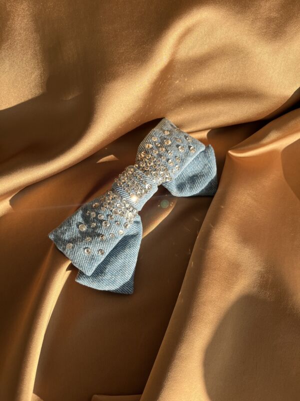 Die Namjosh Haarschleife Jeans hell mit Strass ist ein hinreissend schönes Accessoire das jeden Look aufpeppt! Diese hübsche Haarschleife lässt sich zu eleganten Looks genau so gut kombinieren wie zu casual Outfits und hilft dir einen besonderen Style zu kreiieren. Egal ob für Zuhause, in der Freizeit oder zum Ausgehen, mit diesem coolen Haarschmuckstück gibt es keine Bad Hair Days mehr und du bist immer stylisch gepflegt unterwegs. Du wirst diese Haarschleife lieben weil sie nicht nur super schön ist sondern auch angenehm leicht zum Tragen. Dieses aussergewöhnlich Accessoire ist auch eine tolle Geschenkidee um jemandem oder dir selbst eine kleine Freude zu bereiten! Ein Accessoire das dein Outfit im Handumdrehen in einen besonderen Look mit dem gewissen Etwas verwandelt. Der helle Jeans Stoff in Kombination mit den Strass Steinen macht diese besondere Haarschleife gleichzeitig rockig cool im 80 er Jahre Stil und glamourös weil sie so schön funkelt. Du kannst dieses umwerfend schöne und coole Haarschmuckstück zu jedem Style kombinieren und so deinem Outfit eine aussergewöhnliche Note verleihen.