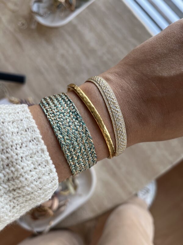 Der Pink Sand Armreif schmal und goldig ist super leichte (ca. 8 Gramm) und nur 4 mm breit, dieses Armschmuckstück wird dich begeistern! Der Armreif ist so vielseitig kombinierbar gerade auch mit den tollen Maayaz Armbänder, du wirst diesen Armreif einfach lieben ! Er passt zu jedem Style und Look und wertet dein Outfit sofort auf. Ein umwerfend schöner Armreif mit der nötigen Portion Coolness den jede Frau in ihrem Schmuck Repertoire braucht. Kombiniere den Armreif mit deinen bestehenden Schmuckstücken, trage ihn alleine oder stell dir gleich dein individuelles Set mit einem der tollen Maayaz Armbänder zusammen. Egal wie und mit was du wirst diesen supercoolen, schmalen, goldigen Armreif von Pink Sand immer wieder und zu allem tragen! Die Schmuckstücke von Pink Sand sind übrigens 3 Mikron stark vergoldet das heisst dass der Armreif seine Farbe behält.