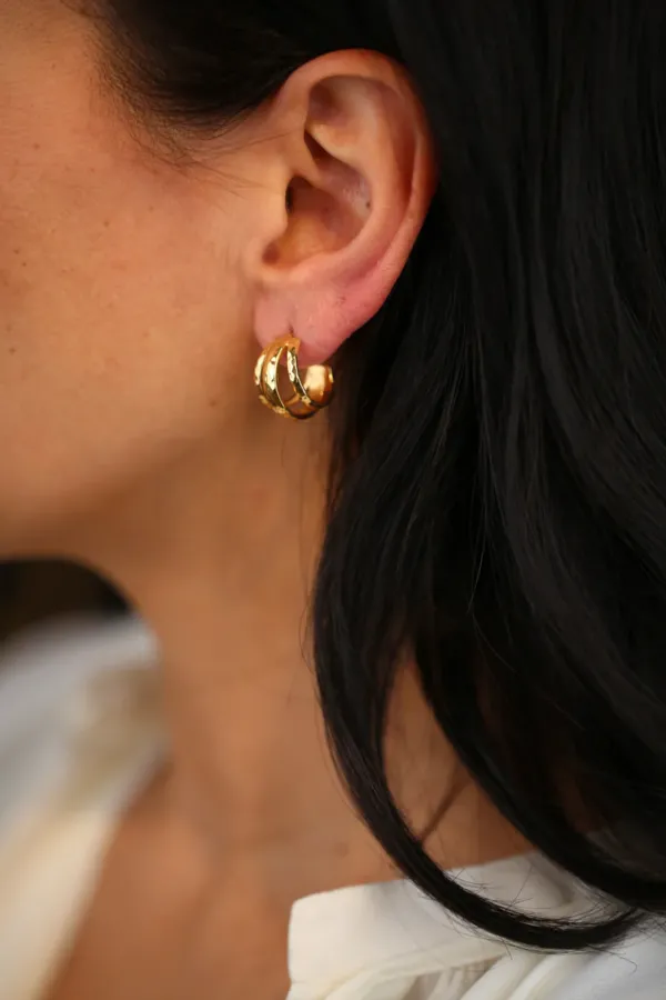 Die Pink Sand Creolen Triple goldig, ist eine wunderschöne, dreifach Creole die sich deinem Look und deinem Style ein sofortiges Up-Grade verleihen. Egal ob für in’s Office, zuhause oder am Abend, diese stilvolle und gleichzeitig super lässige Creole von Pink Sand passt einfach immer! Wunderbar leicht, spürst du diese kaum beim Tragen und sie eignen sich auch perfekt zum Tanzen da sie schön nah am Ohr sitzen und dadurch nicht am Ohr hin- und her schwenken. Ein absolutes Must-Have und Essential für jede Schmuckgarderobe. Genau richtig für alle die zeitlose und gleichzeitig moderne Creolen suchen welche bei jeder Gelegenheit und zu jedem Anlass passen!