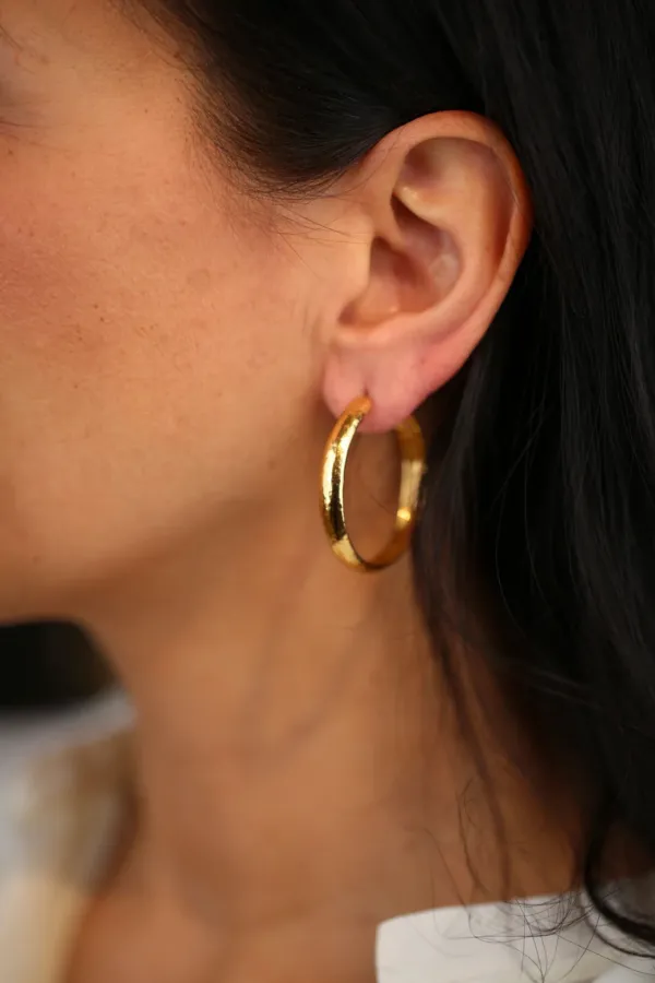 Diese umwerfend tolle & zeitlose Pink Sand Kreole in einer mittleren Grösse besticht durch ihre Schlichtheit mit grosser Wirkung. Mit dieser supercoolen, glatten mittlere Kreole von Pink Sand, hast du ein tolles Schmuck Basic mit dem du alle deine Looks aufwertest. Sie passen genau so gut im Alltag wie auch Abends zum Ausgehen und haben eine ideale Grösse mit 3.5 cm Durchmesser sind dies nämlich nicht zu gross und nicht zu klein. Da die Kreolen hinten offen sind, sind sie auch sehr angenehm zu tragen weil Tragekomfort das A & O ist wenn es um Schmuck geht! Extra Tip: wenn du ein schlichtes weisses oder schwarzes T-Shirt trägst plus Jeans oder eine elegante Hose dann katapultieren diese Pink Sand Kreolen deinen Look auf ein neues Level! Du wirst dich mit diesem Look stark, selbstbewusst und stilsicher fühlen! Probiere es aus! Auch erhältlich in Silber.